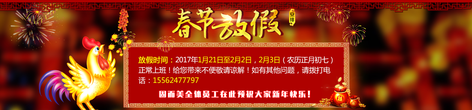 固而美2017年春節(jié)放假通知